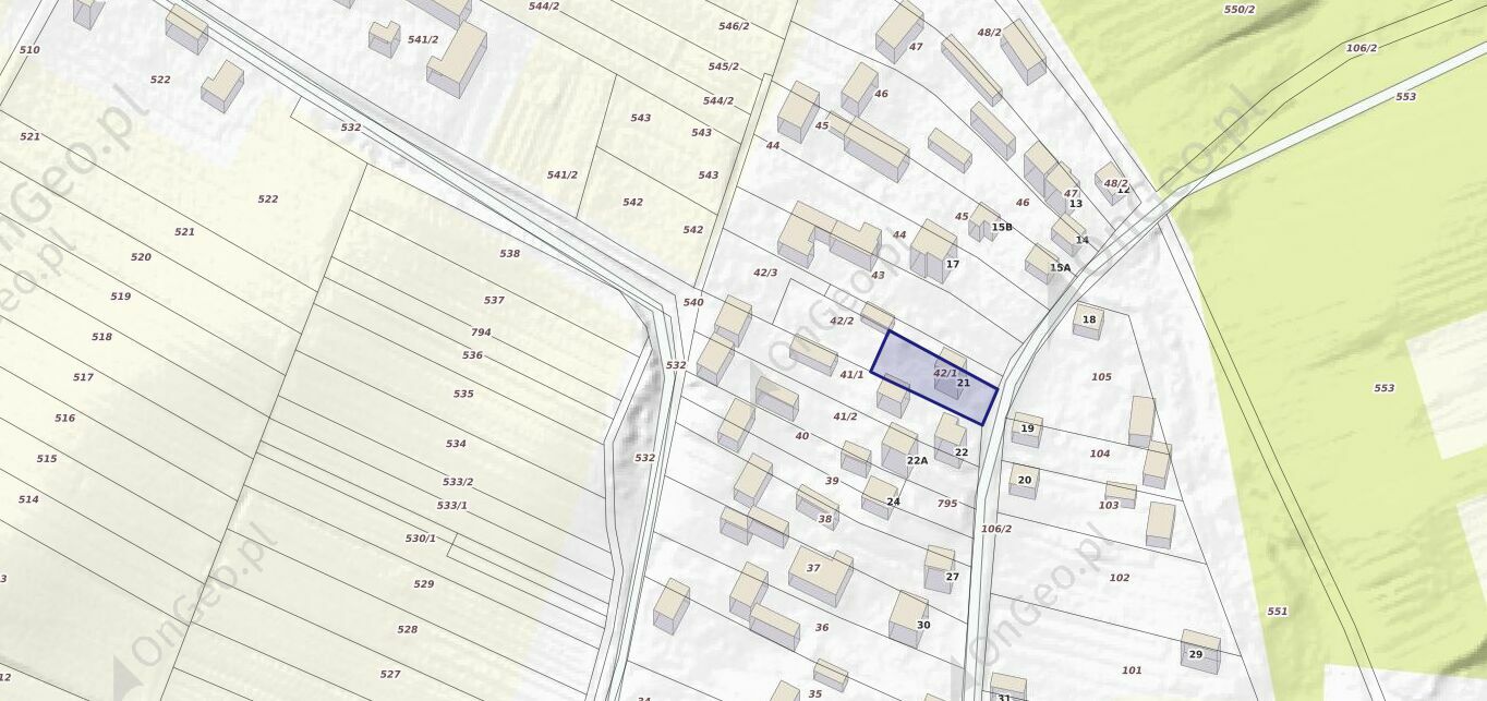 Działki mają powierzchnie 600 m2 zostały wydzielone ( zgodnie z MPZP dla tej gminy ) z dużej działki 2200 m2 . Nieruchomości posiadają księgę wieczystą i nie są zadłużona ani zastawione - jestem jedynym jej właścicielem .